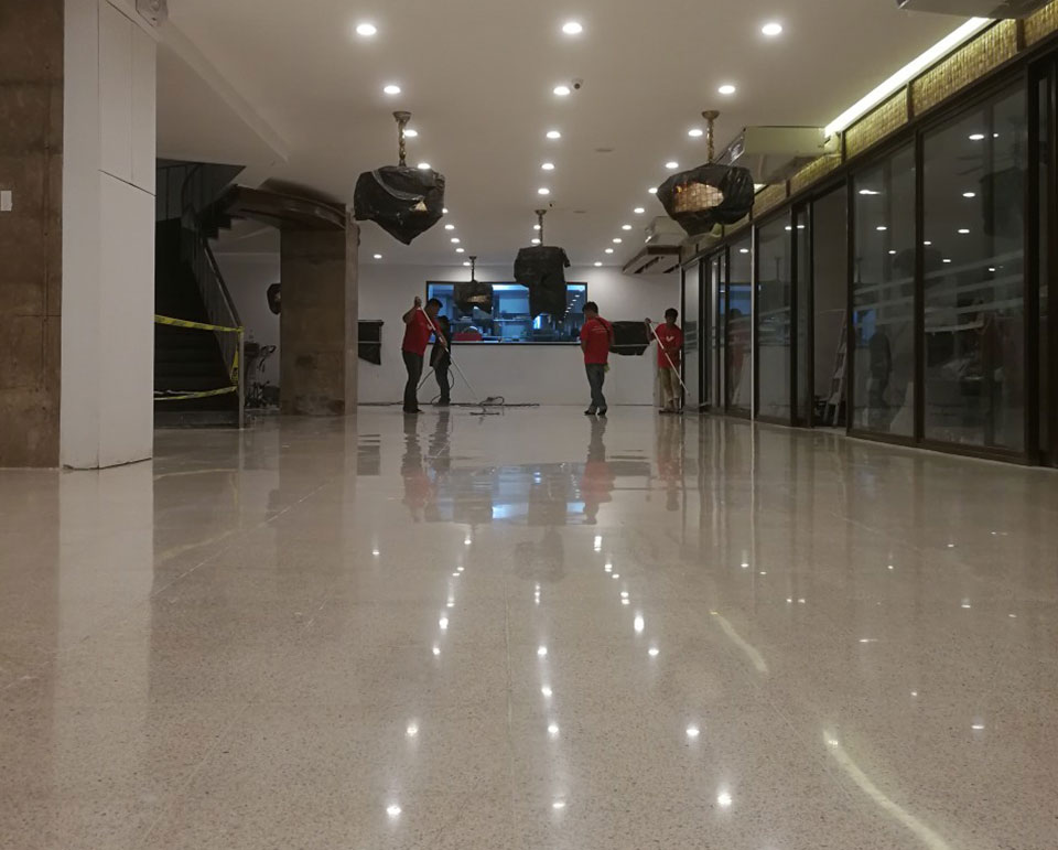 • The restoration of old concrete terrazzo floors, and granite and marble walls and floors.